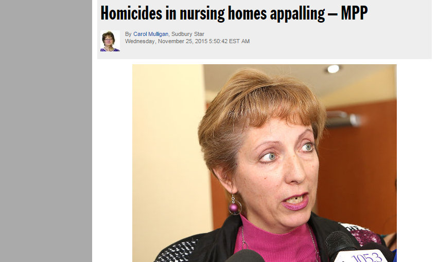 Nov. 25, 2015 | Homicides in nursing homes appalling. Dr. Tamara Daly was quoted in an article by the Sudbury Star and the Nugget, “Tamara Daly, a researcher at York University, said the report calls the deaths “a systemic problem” that needs to be investigated.” Read the full story here and here.